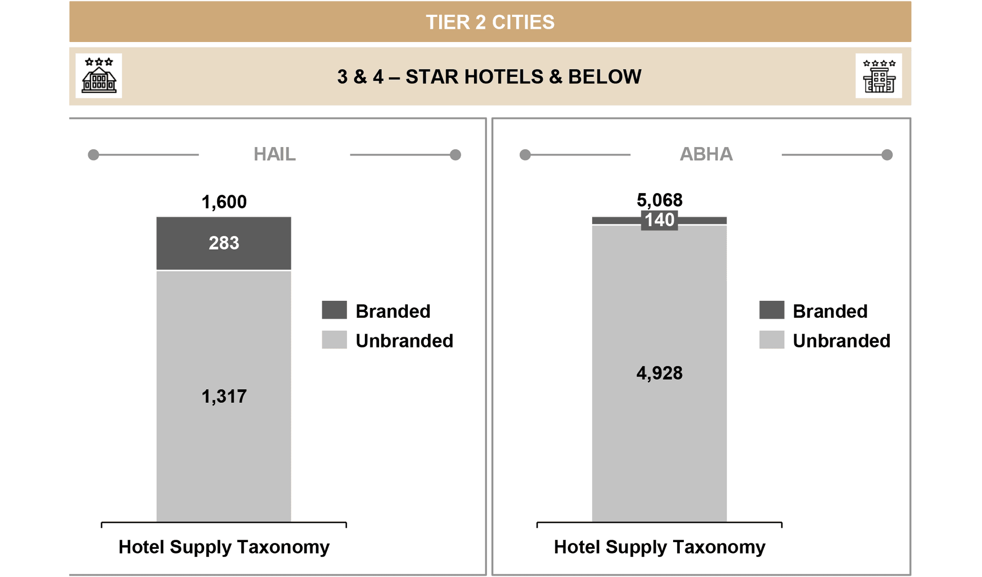 Hail’s hospitality market faces an oversupply of unbranded hotels, which presents the opportunity to introduce branded hotels and upgrade the quality of offerings in Hail.
