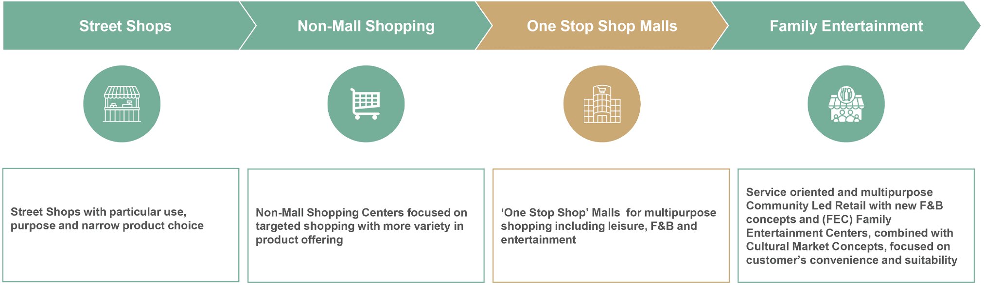 - Mixed-use developments around the One-stop shop malls present an opportunity to attract consumers from nearby catchment areas, serving the local community by providing a mix of services and products
