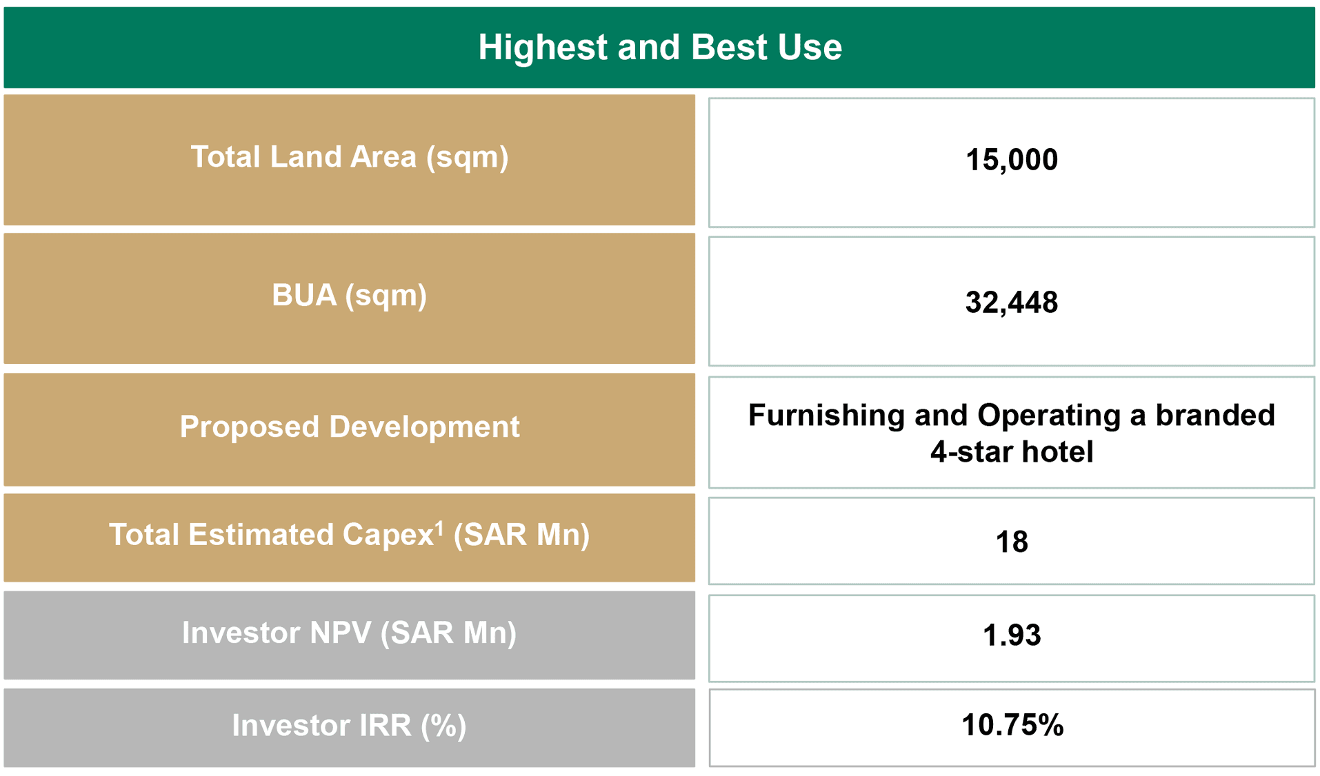 To undertake this mission, the landowner can opt to partner with potential investors, which are currently operating within the real estate and hospitality sector in KSA.