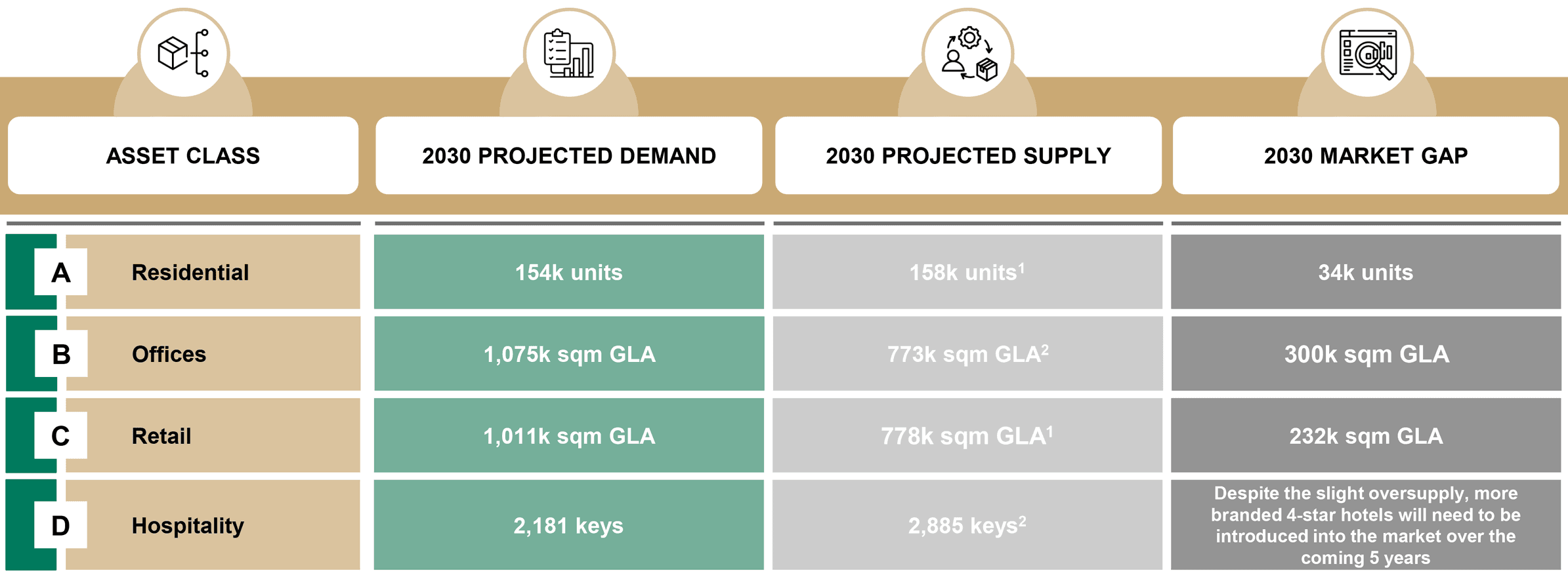 This is highlighted by a shortfall of 232k sqm in GLA, underscoring the need to introduce more offerings by HRDA as well as a multitude of other public and private entities.